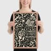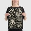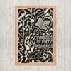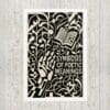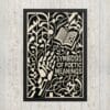 Geometric vines intertwine with the contours of a hand and the open page, creating a dense field of shapes where interpretation takes root. The composition suggests that poetry does not stand alone but flourishes in relation; each fragment of text feeds another, and each reader shapes what is read.